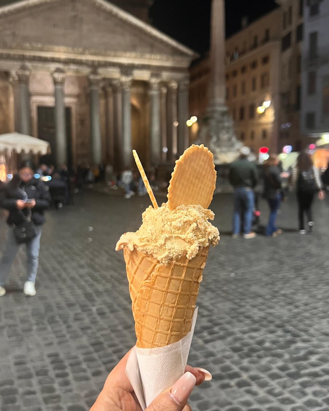 Piazza Navona was different. If the Forum spoke of the past, Navona sang of the present. By day, artists sketched portraits, musicians filled the air, and Bernini’s fountains seemed to dance in the sunlight. By night, though, the square turned magical. Strings of lights glowed, trattorias spilled out into the cobblestones, and the air smelled of pasta, pizza, and wine. I picked up food here and felt the heartbeat of Rome in every bite.